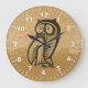 Owl icon on beige grunge background. Symbol of wisdom and wealth.