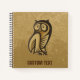 Owl icon on beige grunge background. Symbol of wisdom and wealth. Custom text.