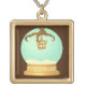 Owl talon and bone chandelier fall snow globe gold plated necklace