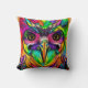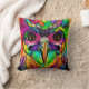 Owl with Colorful Feathers Quirky AI Art Throw Pillow
