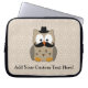 I ordered the 15-inch neoprene laptop sleeve with the mustached owl. I had it personalized, and did not have to pay extra for the printing. The sleeve arrived in a water-resistant package. This was nice, as it was RAINING the day it was delivered and UPS left the package on the front stoop to get rained on. The design and printing were clear and have worn well.