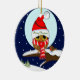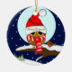 Owl with Santa hat & custom text Ceramic Ornament