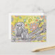 A cute and quirky pair of owl characters. An original, hand drawn, design scanned on to different backgrounds to make a truly unique piece of owl art. A great postcard for bird and owl lovers alike.