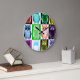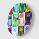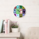 Wildly colorful little owls appear on this fun wall clock. Digital collage by artist Anita Barnard. This little owl started as a vintage image from the Graphics Fairy, then got a mod psychedelic treatment. A great pop of color for your room! This design is also available as a throw pillow, messenger bag, iPad and iPhone case, with more matching owl products in my store. http://www.zazzle.com/13moonshinedesigns/gifts?qs=owls+grid