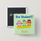 Owls perched on a ruler, this is the perfect way to reward a student for academic achievement, good citizenship, etc. Featuring cute red, green and pink owls perched on a yellow ruler, there is a green striped background setting the scene. "Star Student" is written at the top of the button in blue, and student's name at the bottom. Purchase your button today!