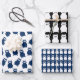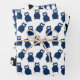 Owls on blue and Black Birthday Wrapping Paper Sheets