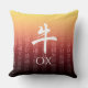 Ox 牛 Red Gold Chinese Zodiac Lunar Symbol Throw Pillow