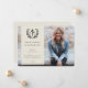 A formal but modern graduation photo announcement to celebrate professional medical qualifications. Featuring a full-bleed photo with a color overlay and the Asclepius symbol (with the 'MD' abbreviation) surrounded by a laurel wreath. The template text for the graduate’s details is completely customisable, so the font size, style, color and placement can be changed. The back features a solid colored background and template text for a longer message. If you would prefer to include no text on the back, just delete it before ordering. If you would prefer a photo on the back of the card, delete both the colored background and the template text and upload your own photo. The design is available in other colors and with different medical qualifications/symbols in my store.