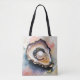 Tote bag features original oil painting style artwork of an oyster with a pearl. Light, delicate tones. Elegant shellfish sea creature beauty.