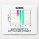 Showcase your wry ozone attitude with this mousepad featuring a graph of the ozone layer in Earth's atmosphere along with the varying levels of blockage for different ultraviolet radiation. Comes with the truism saying about the role of ozone to life on Earth, since ozone blocks damaging rays from the Sun which causes genetic damage but is also known as a pollutant in the atmosphere: "Ozone Can't Live With It & Can't Have Life Without It".