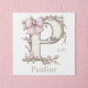 This personalized wall art features a whimsical letter design, perfect for adding a touch of charm to a child's bedroom. The artwork is customizable with any name, making it a unique and thoughtful gift. The soft color palette and delicate details create a sweet and inviting atmosphere.