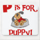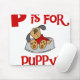 Red text reads "P is for Puppy" on these cute puppy design T-shirts, mugs, tote bags, cards, and more, great for anyone of any age who loves dogs!