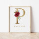 P Letter Monogram Name Marsala Floral Nursery Poster