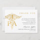 Faux gold PA and caduceus medical symbol. Works as both a graduation thank you, party invitation or a graduation announcement. Add a photo to the back if desired.