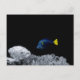 Pacific Blue Tang is in color with a reef tank in black and white.