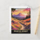 Pacific Crest postcard. Sunset on the pacific crest trail with mountains behind. Illustrated travel postcard