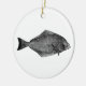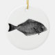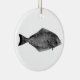 Lightweight, smooth, pure white ornament with nice sheen. Perfect size to be seen from across the room ... and to attract closer inspection! Price was great for ordering enough for the whole family! Clear, bold black design just as requested. Matches the order exactly. Just so nice!