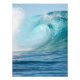 Vertical photo print of a big surfing wave breaking on a reef in the pacific ocean with a lot of spray showing freshness and energy.