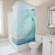 Shower curtain with a big blue surfing wave breaking in the Pacific Ocean. It shows freshness.