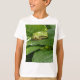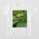 Original photograph of a small pacific tree frog, resting on leaves, peering at the viewer