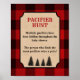 PACIFIER HUNT sign featuring a red flannel lumberjack design. Perfect for your lumberjack themed baby shower.