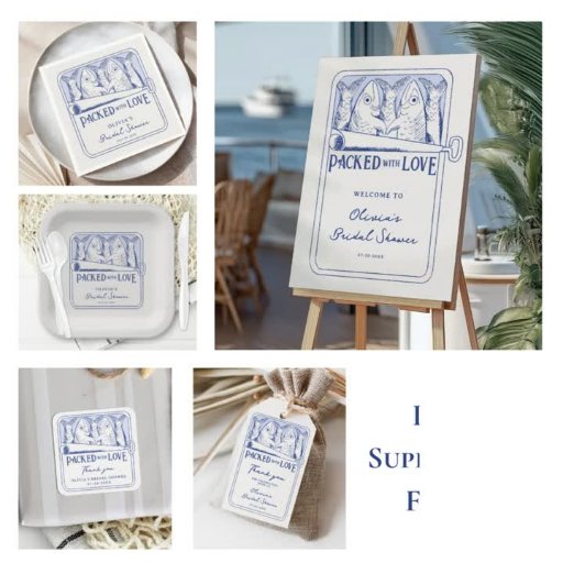 Yes! Our Independent Creators have worked hard to create many products as collections or in coordinating styles and new designs are added daily to many different products. Some popular supplies that match Packed With Love Tinned Sardines Bridal Shower Invitation include napkins and posters that are among our best sellers but we also have many more products you can look at.