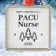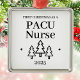First Christmas as a PACU nurse heart ornament for a new job in nursing in the post-anesthesia care unit. Elegant luxury style holiday ornament in white with black lettering, with minimal Christmas trees and stars.
