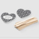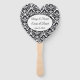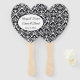 This paddle fan is shown with a lovely black and white damask print with sample names and date.