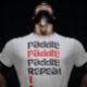 Simple white and red design with writing "Paddle, Paddle, Paddle, Repeat !". Perfect gift for paddleboarders.