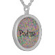 I chose gold plated so that the metal would not react with my skin oils and perspiration. But, I changed the necklace from the gold plated one to a sterling silver. My skin cells will tarnish the silver. But it will not look as bad if some portion of the gold plated necklace somehow became compromised. Zazzle did a find job turning the picture into a pendant for me. As you can see, the colors and the printing of the final product, match the preview. The picture I took is not very clear. But I am pleased with the product I received.