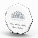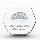 Acrylic award shown in the octagonal shape and is in white with a pageant queens crown.