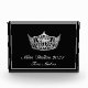 Acrylic award shown in the horizontal shape and is in black with a pageant queens crown.
