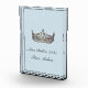 Acrylic award shown in the block shape and is in a blue fog color with a pageant queens crown.