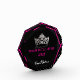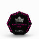 Acrylic award shown in the octagonal shape and is in black with a pageant queens crown and hot pink modern streaks. Customize and change the name and title to yours and custom the text and colors too.