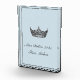 Acrylic award shown in the block shape and is in a blue fog color with a pageant queens crown.