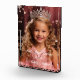 Acrylic award is shown in the block shape with a sample photo of a little miss pageant queen in crown.