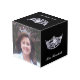 Photo cube shown with a pageant queens crown photo print on the top and sides in black with white text and as is so you can add your favorite pageant photos to the cube and adore forever.
