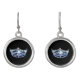 Dangle drop pierced earrings is shown with a black background with a bluetone pageant crown print.