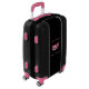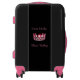 UGO Luggage carry on piece is shown here in the color black with pink accents and with a pink pageant queens star crown print and a custom sample name and title, customize and change the name and title to yours.
