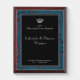 This unique wood awards plaque is shown with a black and rich Persian blue vines background, a silver crown and text for you to personalize with your own information surrounded by a double border.