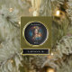 This Christmas ornament is shown in a banner style with a sample photo print of a pageant queen. Shown with ribbon and premium gold tone rimmed. Customize this item with your personal photo, name, pageant name, date or other with this template.