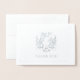 This card is shown in white matte finish card stock paper with a pageant queen crown print with Thank You in real silver foil.