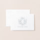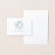 This card is shown in white matte finish card stock paper with a pageant queen crown print with Thank You in real silver foil.