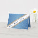 This note card has a fun blue faux glitter print on the front with a pageant looking banner sash with faux rhinestone-look trim and customized text for you to personalize. Sample text shown in "Miss Kent Valley". Text shown in Navy Blue. Inside card has a thick faux blue glitter-look border just like the front with navy blue inner border and a white area for you to write a personal note or invite; or if you prefer draft one right here by adding your own text.