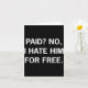 Paid No I Hate Him For - Funny Sarcasm Card