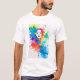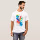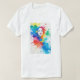 Design a shirt graphic that embodies a playful and artistic vibe, featuring a colorful paint splatter or brushstroke theme. Use a mix of vibrant and bright colors like bold blues, energetic yellows, and lively reds to create a dynamic, abstract pattern. Include elements such as dripping paint, paintbrushes, or cheerful splashes to enhance the artistic feel. The design should be visually exciting and convey a sense of creativity and joy, ideal for a shirt that celebrates artistic expression and fun.
