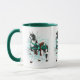 I have loved carousels since I was a child. The beautiful designs of the animals and music from carousels set up at fairs and parks hold a special place in my heart. This inspired me to draw some carousel horses of my own, then color them with acrylic ink. The watercolor of a black and white paint horse decorated in green featured on this mug is one of the results.