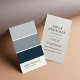 Cleverly designed vertical business cards mimic the look of a paint chip card, with three rectangles in ombre gradient shades of navy blue and gray. Personalize the front with your name and title, occupation or business name, and add your full contact information to the reverse side. A chic choice for interior design professionals, decorators, and painters. To change the color of the paint chips, click "Customize" and select a new background color from the palette, or enter a custom hex code. Colors will automatically update in three coordinating shades.