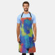 Great color and even though I ordered the kid size, it covers well enough to use during the holidays. I am not a big woman and prefer a shorter apron. I stand 5"6" and the length of the garment goes to mid-thigh. The tie straps fit well at my waist and even though there is no neck strap adjustment, the opening is plenty big enough. I am happy with the size and fit. I am sharing my apron with my 10 year old grandson, too! The color is vibrant and looks good, as shown on the website. The stitching looks strong and reinforced. Photographed is front side and back side of the apron, reinforced straps and coloring. My phone camera may not be the best at showing the details.