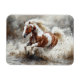 A dynamic painting of a paint horse running through water, capturing the powerful motion and natural beauty of this spirited animal in a wild setting.